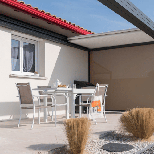 Idéale pour les moments conviviaux, elle vous permet également de retrouver une terrasse ouverte et libre lorsque la toile est rétractée. En ajoutant des stores latéraux, vous pourrez créer un espace encore plus intime et protégé contre le vent et les regards.